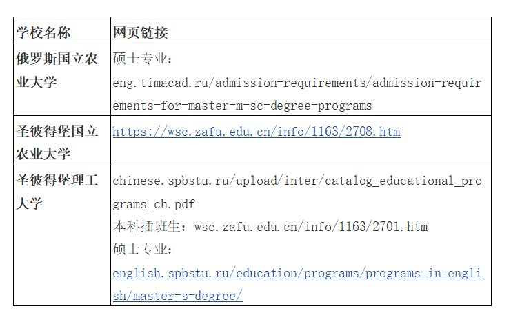 本项目留学单位授课专业情况如下(以下链接可能随时更新,请及时刷新页面通知查看。外方学校最终开课专业以实际为准):